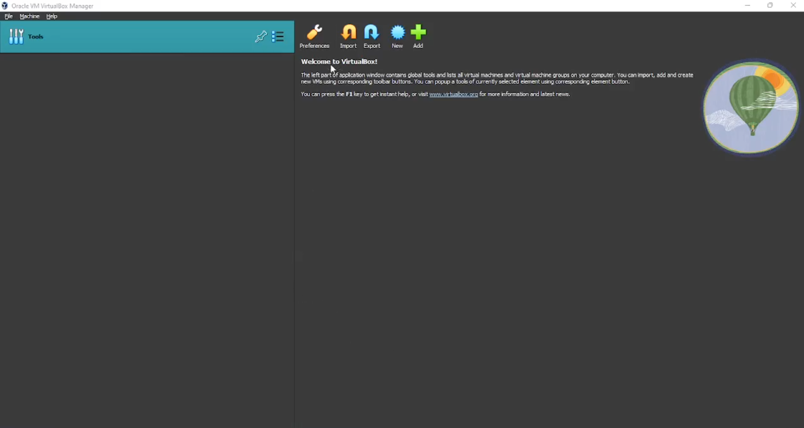 Sepertinya untuk menginstal VBox tidak perlu diperlihatkan seperti apa, karena seharusnya untuk belajar windows server sudah sangat familiar dengan install aplikasi di windows. Langsung saja setelah menginstal Virtual Boxnya tampilannya akan seperti ini