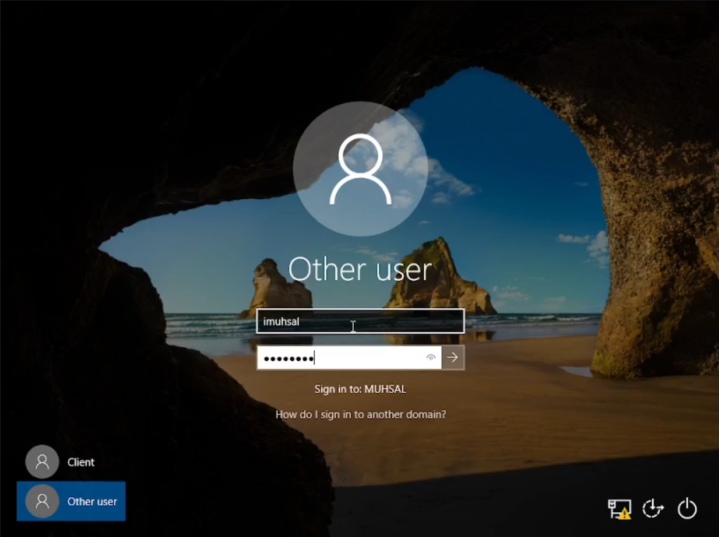 Setelah restart kita, disuruh login kembali, sebelum kita login kita lihat di windows server, di gambar merupakan list nama dari file “names” di sebelah kiri dan juga “names2” di sebelah kanan-nya. Di file “names” skenarionya kita hanya memasukkan password saja dan akan masuk begitu saja, silahkan dicoba. Saya akan menggunakan imuhsal untuk login.