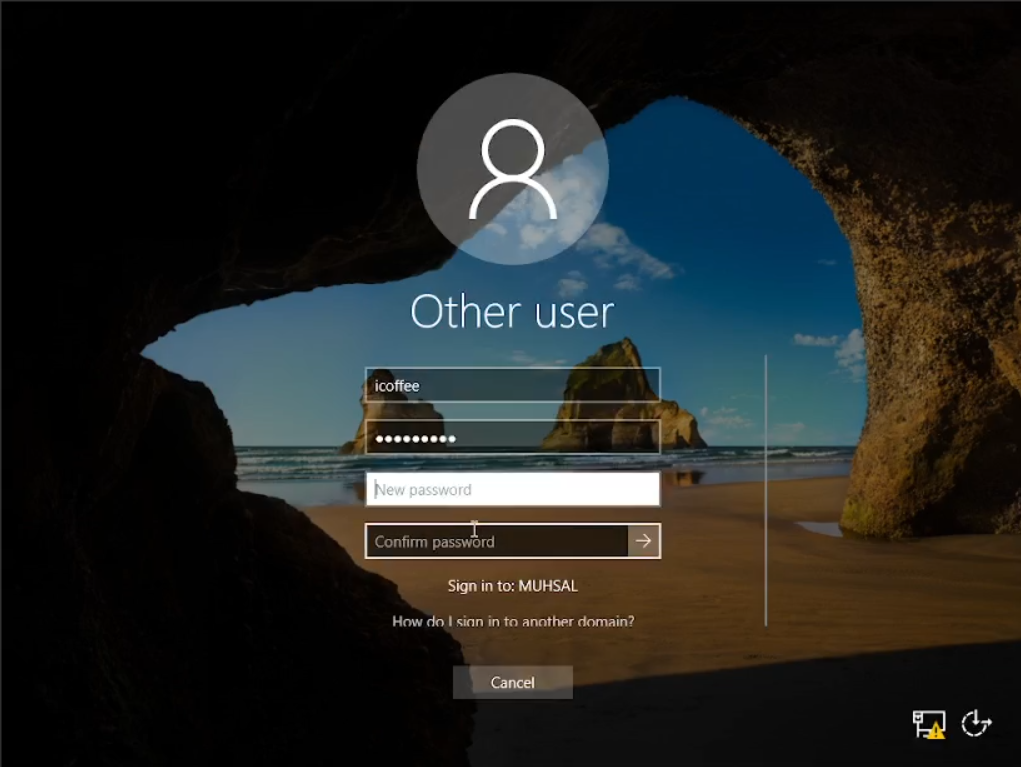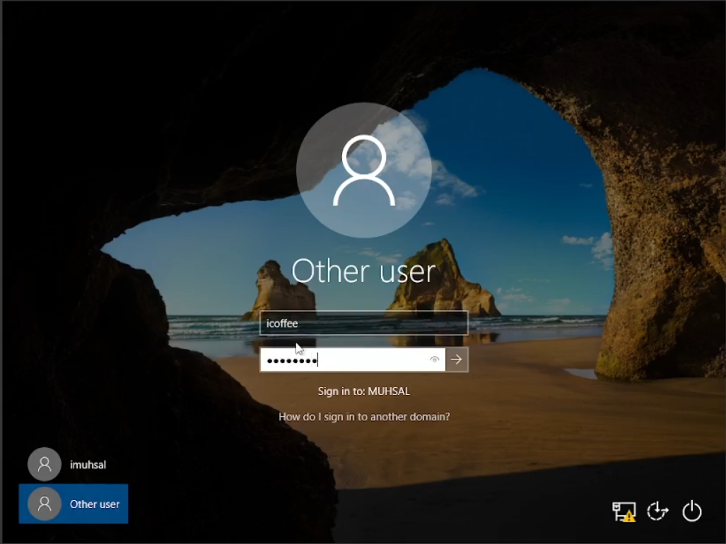 Bisa dilihat saya sebelumnya bisa masuk menggunakan user sebagai imuhsal terlihat dari kiri bawah. Selanjutnya saya akan login menggunakan nama yang ada di file “names2” yaitu icoffee. Ketika kita login menggunakan user icoffee kita diharuskan untuk mengganti password dengan yang baru. Sehingga hanya kita sendiri saja yang mengetahuinya sebagai user, meskipun kita sebagai admin, etikanya kita tetap tidak boleh mengetahui password para user yang lain. Dan tentu gunakan password yang bagus seperti kombinasi huruf besar kecil, angka dan juga simbol. Oiya dan jangan lupa untuk cek apakah client atau user kita dapat terkoneksi internet atau tidak. Dengan menggunakan “cmd” ketikkan saja “Ping google.com”