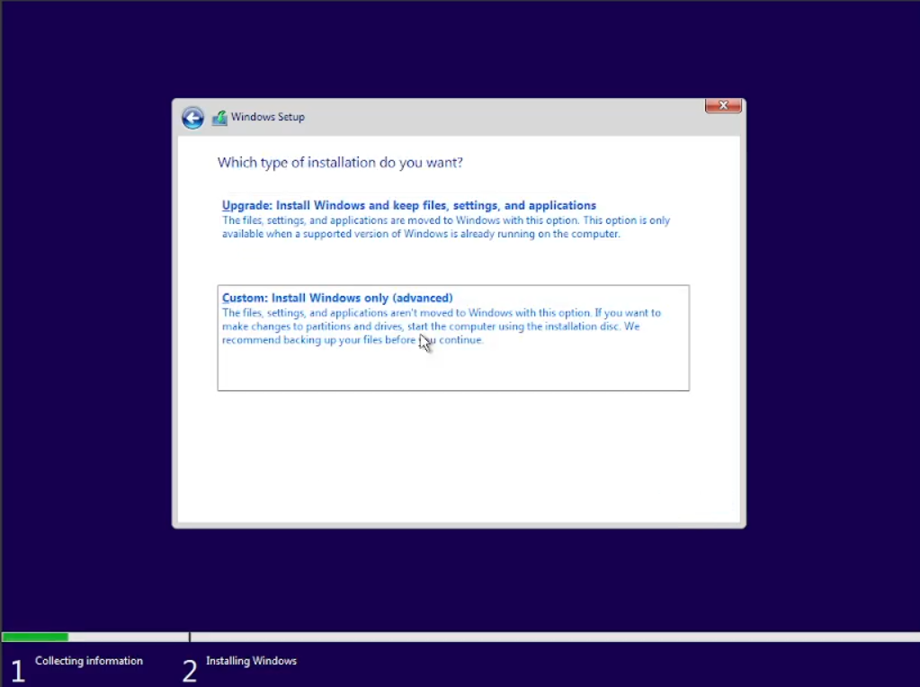 Setelah itu kita ceklis dan klik next, lalu pilih “custom install windows only” karena disk kita masih kosong. Klik pada “Drive 0” lalu next. Kita tunggu sampai semuanya selesai diinstal, kecepatan menginstal tergantung disk yang kita pakai. Bila menggunakan SSD tentu saja akan lebih cepat ketimbang menggunakan Hardisk biasa. Biasanya bila sudah selesai akan merestart sendiri.