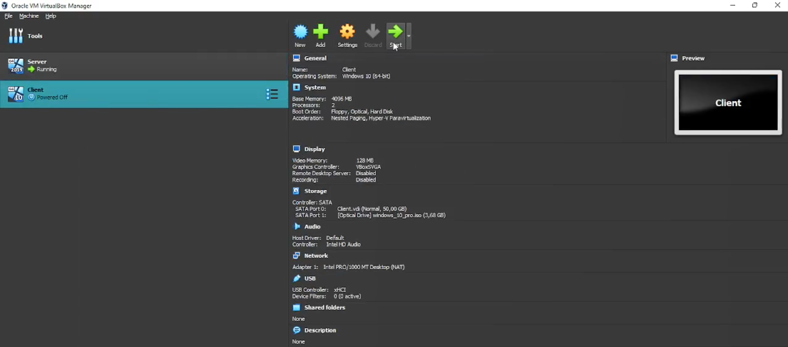 Setelah itu kita ulangi hal yang sama untuk Windows 10. Untuk perintahnya semua sama, hanya saja yang membedakannya di mana saya menggunakan “Client” sebagai namanya untuk RAM 4GB dan 2 Core. Bisa dilihat di gambar