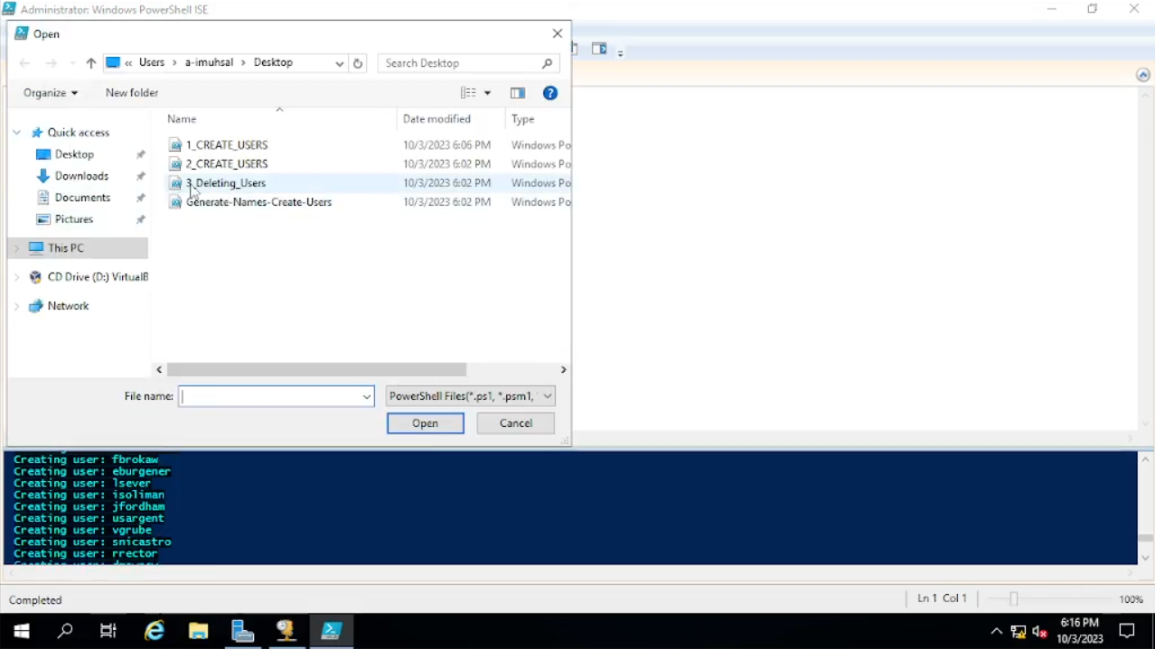 - Menghapus beberapa Users dengan menggunakan Script PowerShell.