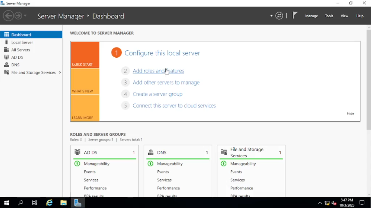 Buka “Server Manager” kalian, klik “Add roles and features” bila ternyata muncul gambar seperti di bawah klik “ok” saja dan tunggu sebentar karena servernya masih loading. Setelah itu coba klik lagi.
